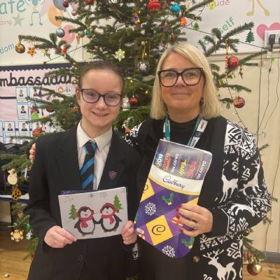 We received some fantastic artwork and we were so impressed by the creativity and festive spirit shown by our children. Two finalists from each school in the Pendle Education Trust family were invited to a prize ceremony at Castercliff Primary Academy where they received certificates, selection boxes and printed copies of their cards to share with friends and family.